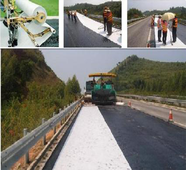 在熱拌瀝青混合料路面下安裝防水層,是保護(hù)和延長(zhǎng)道路壽命的很好方法之一。一般材料的防裂布在高溫時(shí)會(huì)變形、損壞,聚酯玻纖布是由非織造玻纖/聚酯制造??梢越?jīng)受改性瀝青混凝土的高溫施工。聚酯玻纖布的這種高溫穩(wěn)定性將給路面提供一個(gè)連續(xù)、不變形的防水層,有效地防止水分滲透,避免因水分滲透而導(dǎo)致的路面層與基層的損壞。