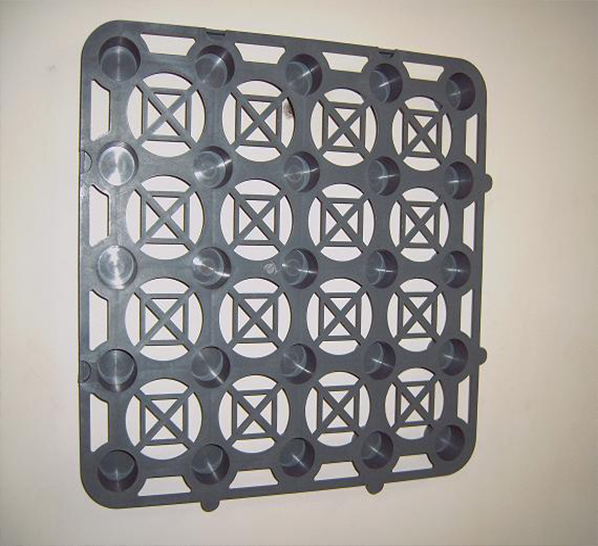 3. 用于做建筑夾層板時,蓄排水板鋪設在屋頂混凝土板上,蓄排水板外再砌一層單墻,或用混凝土來保護,使地下滲水通過排水板的架空空間流入盲溝對集水坑。